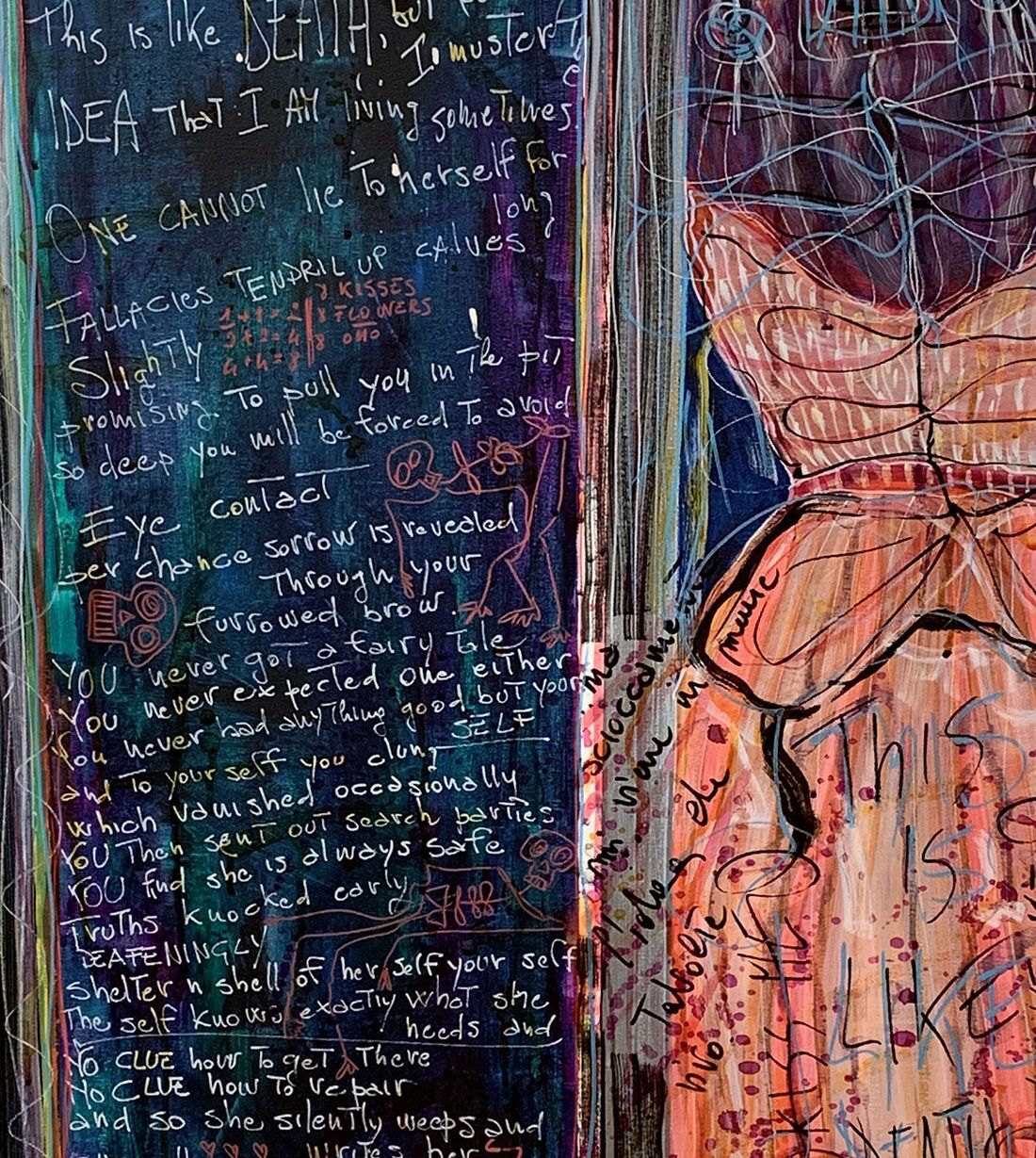 - It is painted on Italian canvas with acrylic colors, ink, pen, markers