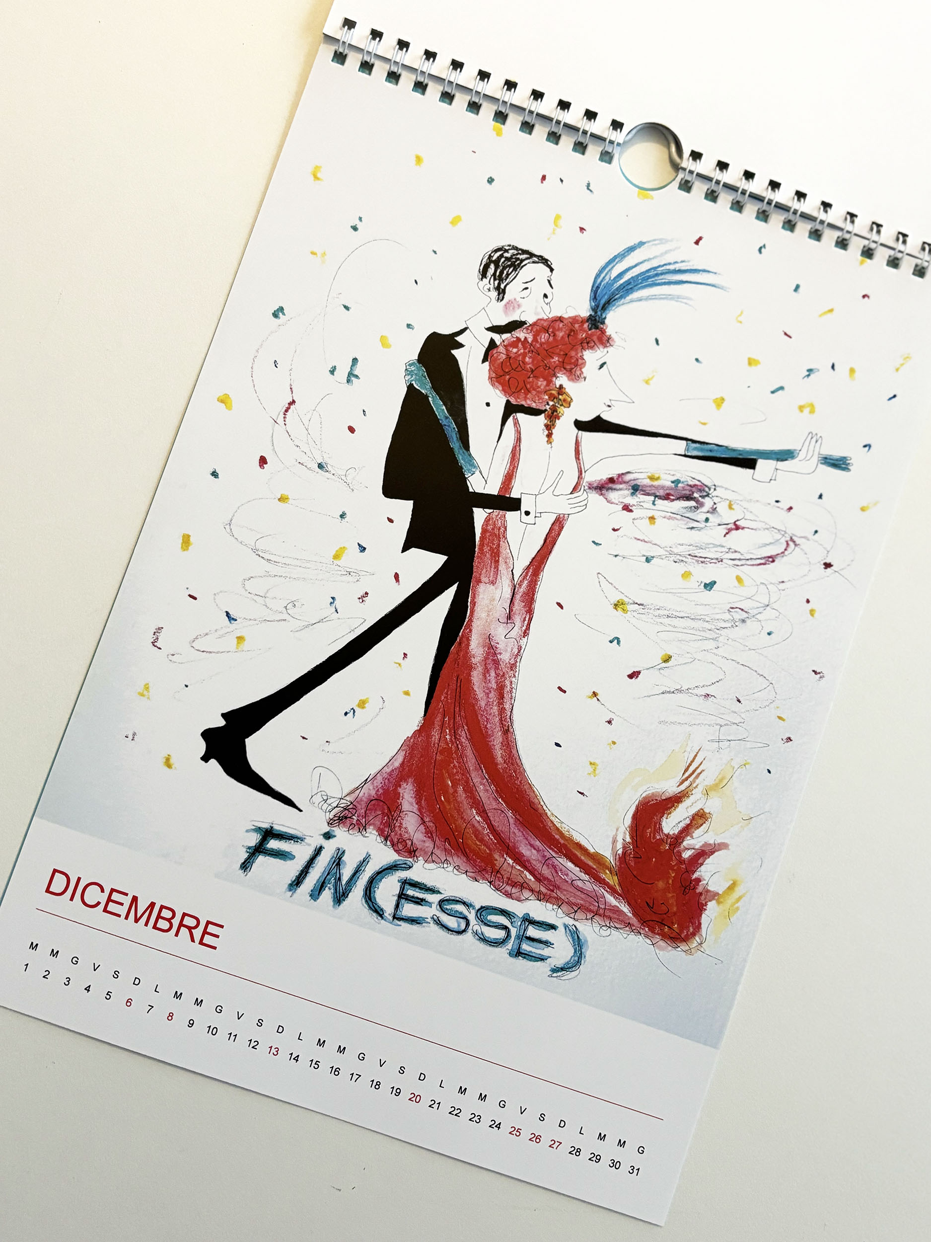 - 14 pages printed on 250 gsm matte cardstock (12 months + cover + final “revelation” page)