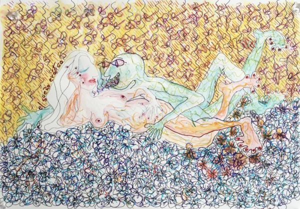 Here a drawing about erotic dreams, a little bit of funny idea of eros.