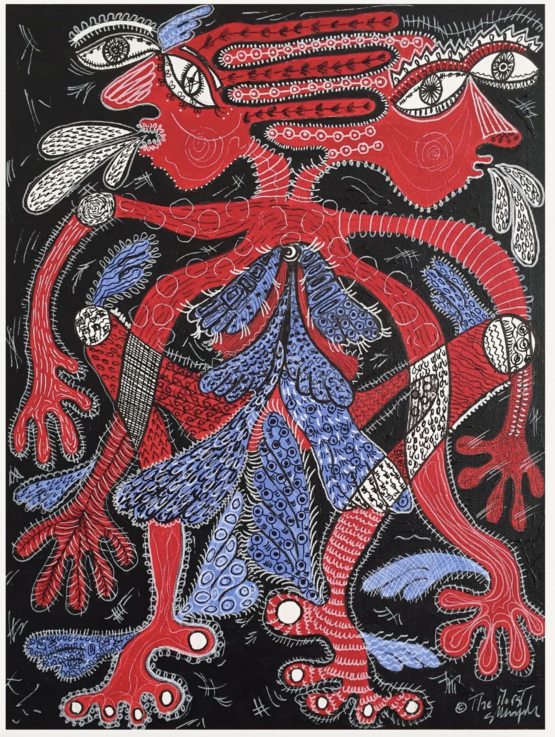 In this artwork, I’ve melded vibrant hues and bold forms from acrylics, pens, and colored pencils to stir a riot of emotions. With inspiration from surrealism and pop art, I infuse each brushstroke with a passion for exploring the complex layers of human experience. This work invites the viewer into a whimsical and somewhat chaotic world, where every line and color clash communicates a deeper quest for meaning and identity. It’s a piece that radiates energy, engaging the imagination and transforming any space it inhabits with a spirit of boldness and creativity.