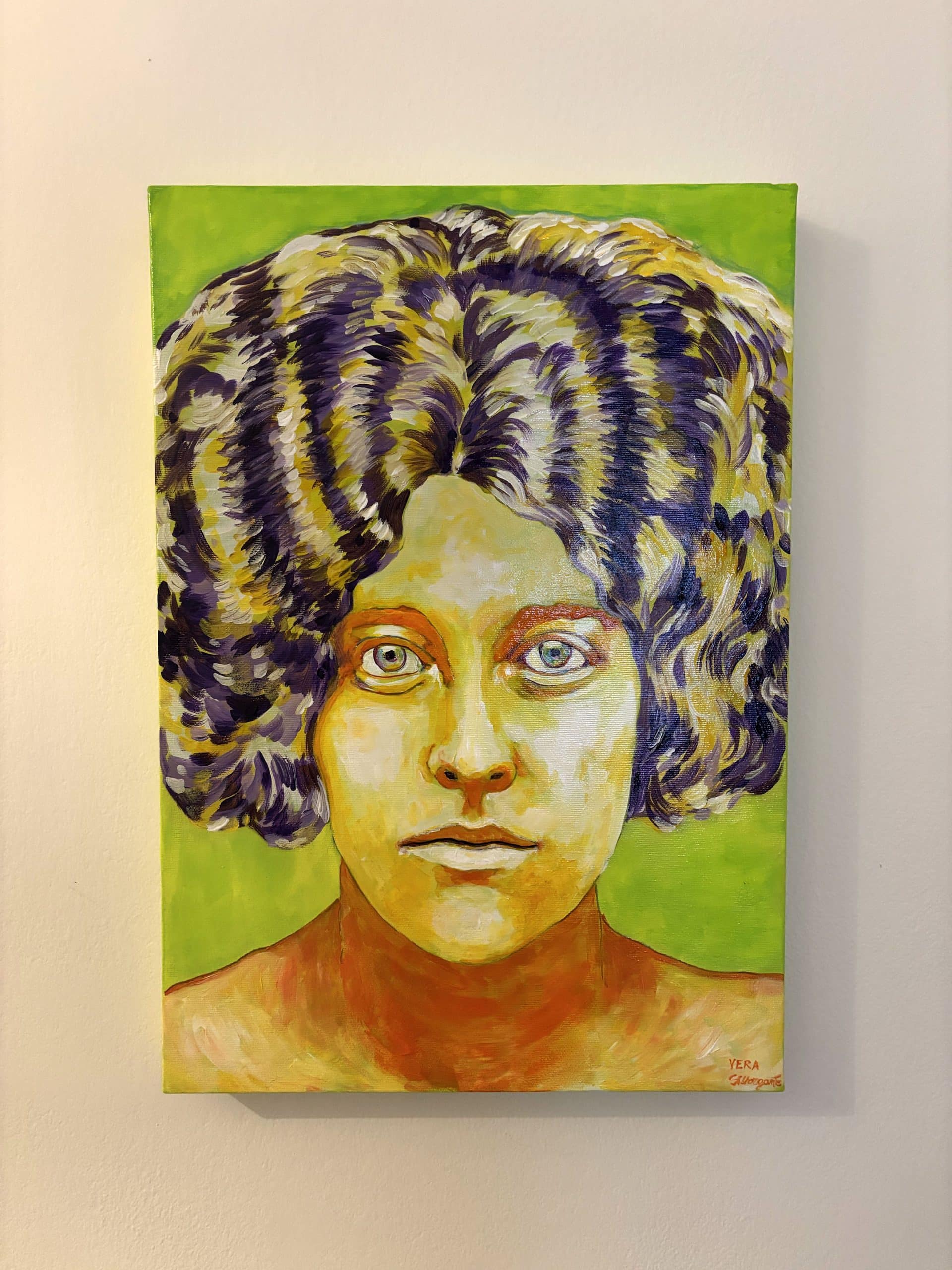 The scarf "My Nadja your Nadja" is a great collaborative work of art by the artists Stefania Morgante, Nadja Schüller-Ost and the photographer Philine Bach. The commissioned work was created as a birthday present for Nadja. From a self-portrait by Nadja and a photograph by Philine Bach, Stefania Morgante worked out an adaptation in her distinctive artistic style, printed it on fabric and sewed it by hand. Packed full of love, the package arrived at our house. The recipient is overjoyed. A thousand thanks, dear Stefania, for this precious unique piece!