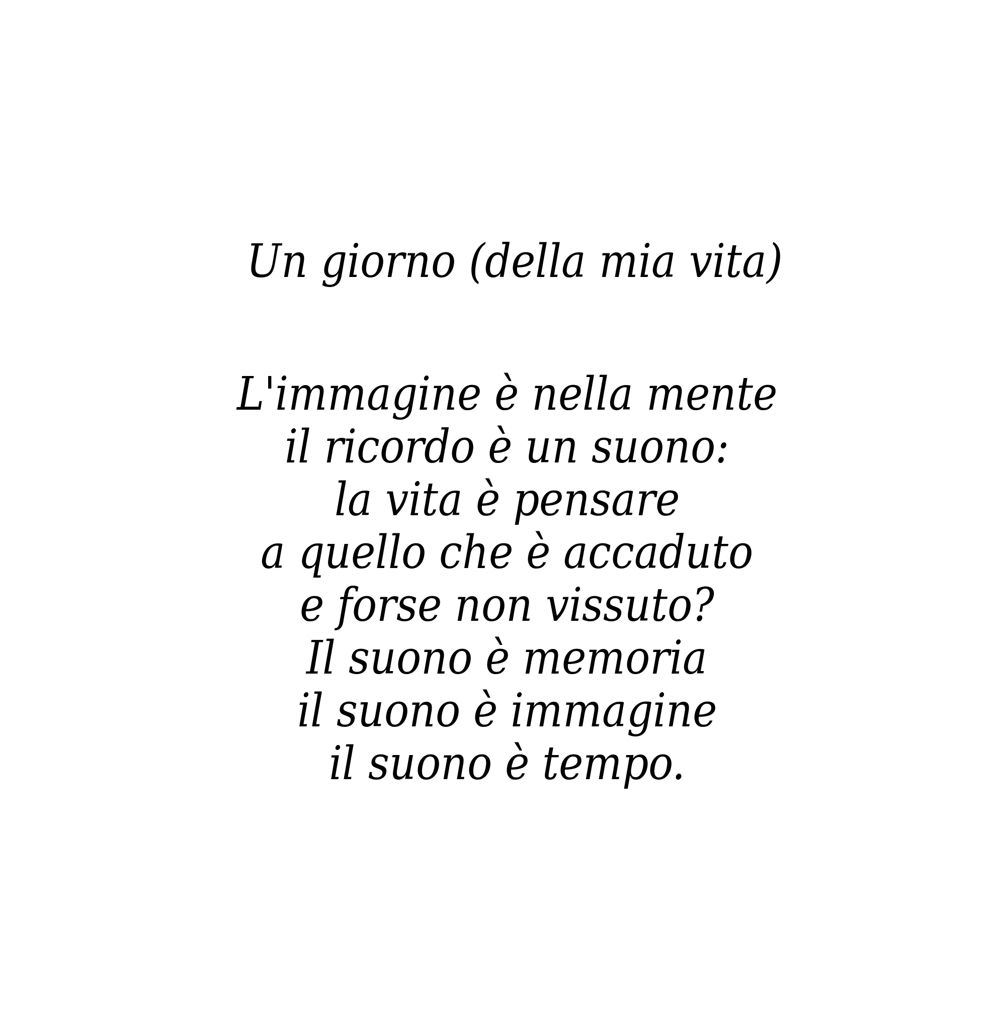 You can listen to: the rain, the wind, the motor of the postman, the water flowing into the sink, the electric toothbrush, watches, hammers of the neighboring houses, dogs and birds, the wind, my voice repeating ‘one day’, the oven.